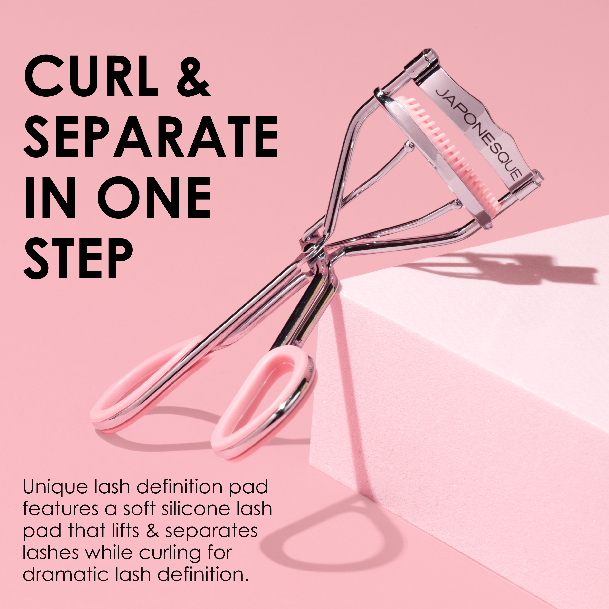 This curler will change how you think about your lashes. Featuring a soft silicone lash separator built into the lash pad, it lifts & separates lashes while curling! Designed with a gentle curve to fit most eye shapes and reach every lash from corner to corner, this lash curler is a must-have for dramatic lash definition.